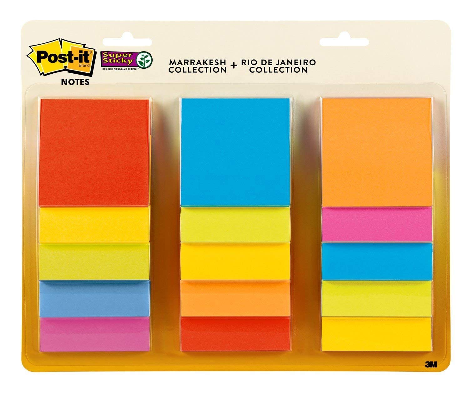 Post-it Super Sticky Notes, 2x Sticking Power, 3 in x 3 in, Assorted Colors, 15 Pads/Pack, 45 Sheets/Pad (654-15SSMULTI)